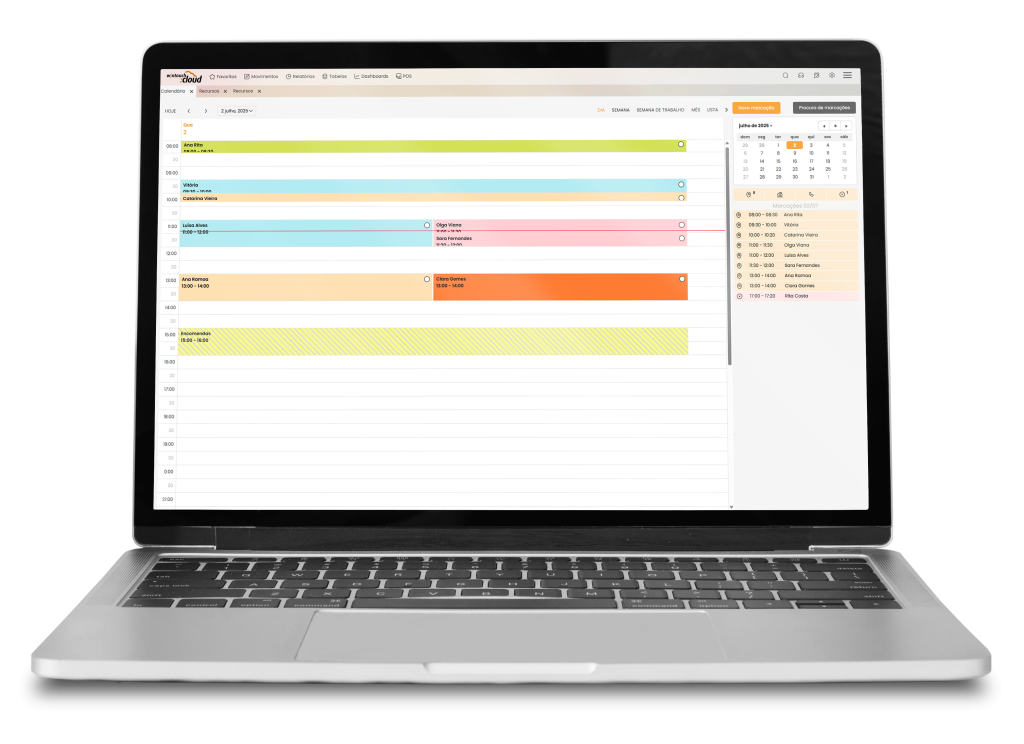 Permite gerir agendamentos por cada recurso criado (serviços, salas...).
