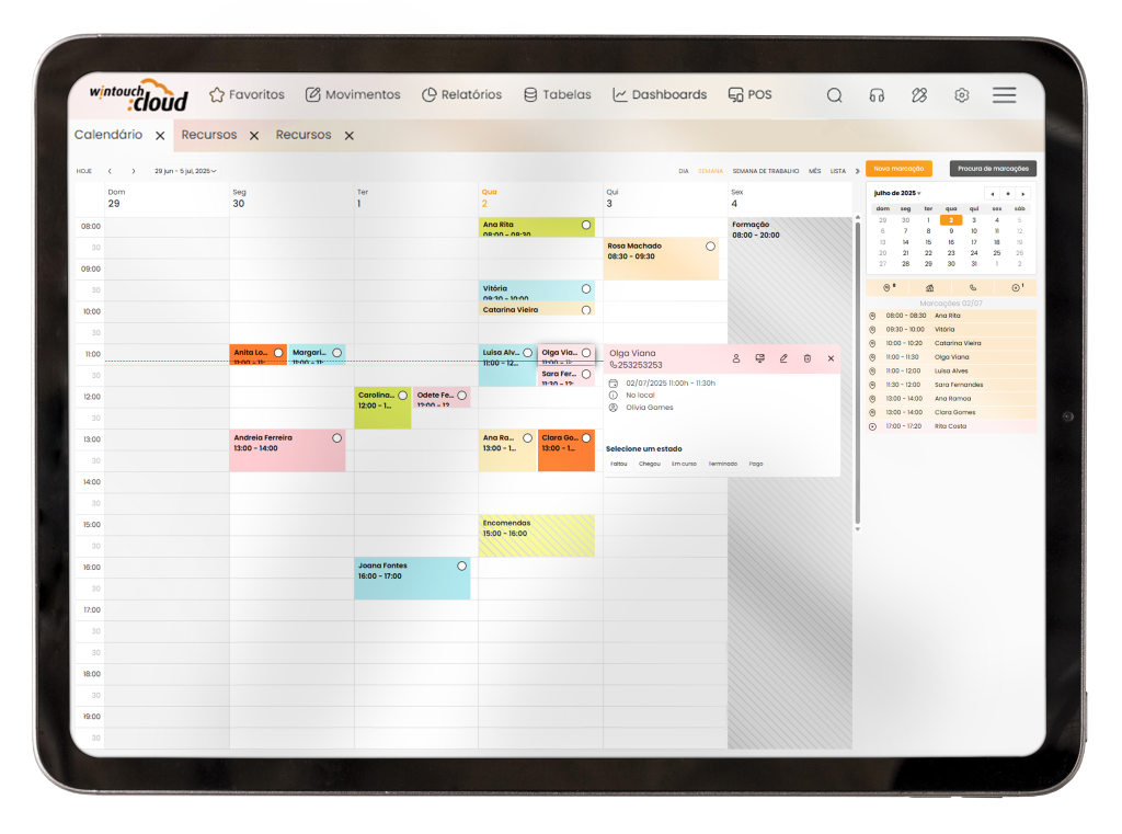 A Aplicação AGENDA complementa as soluções Wintouch Cloud de Gestão Comercial e POS Retalho, Beleza e bem-estar