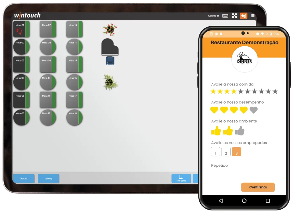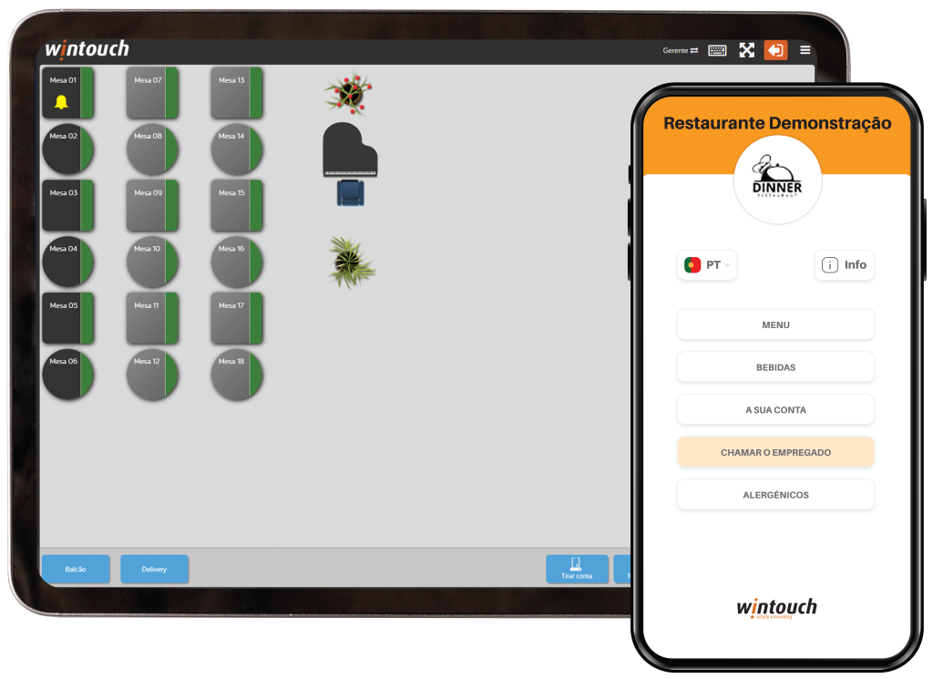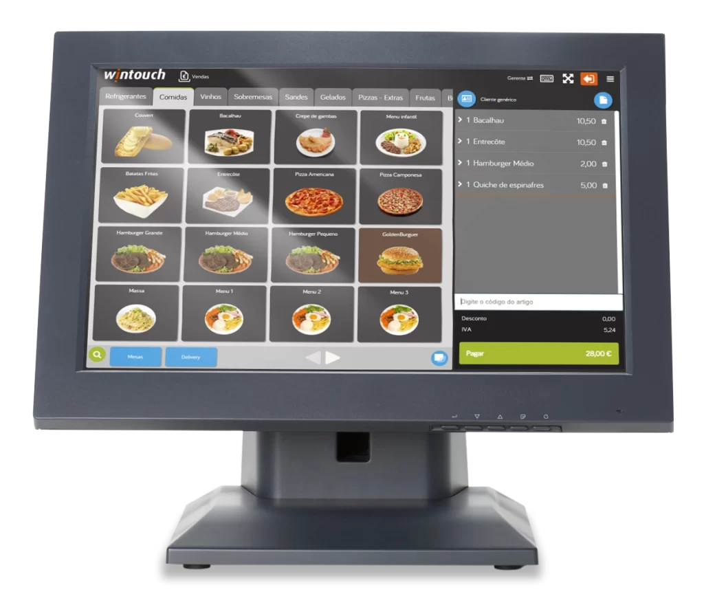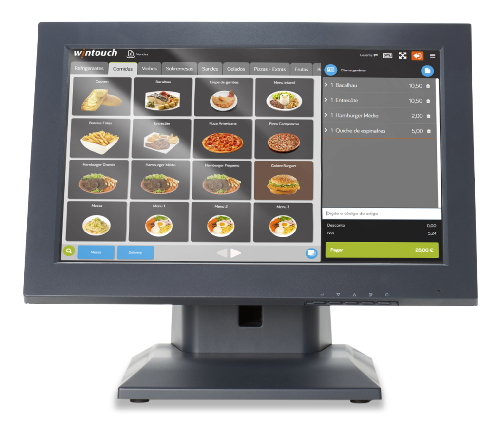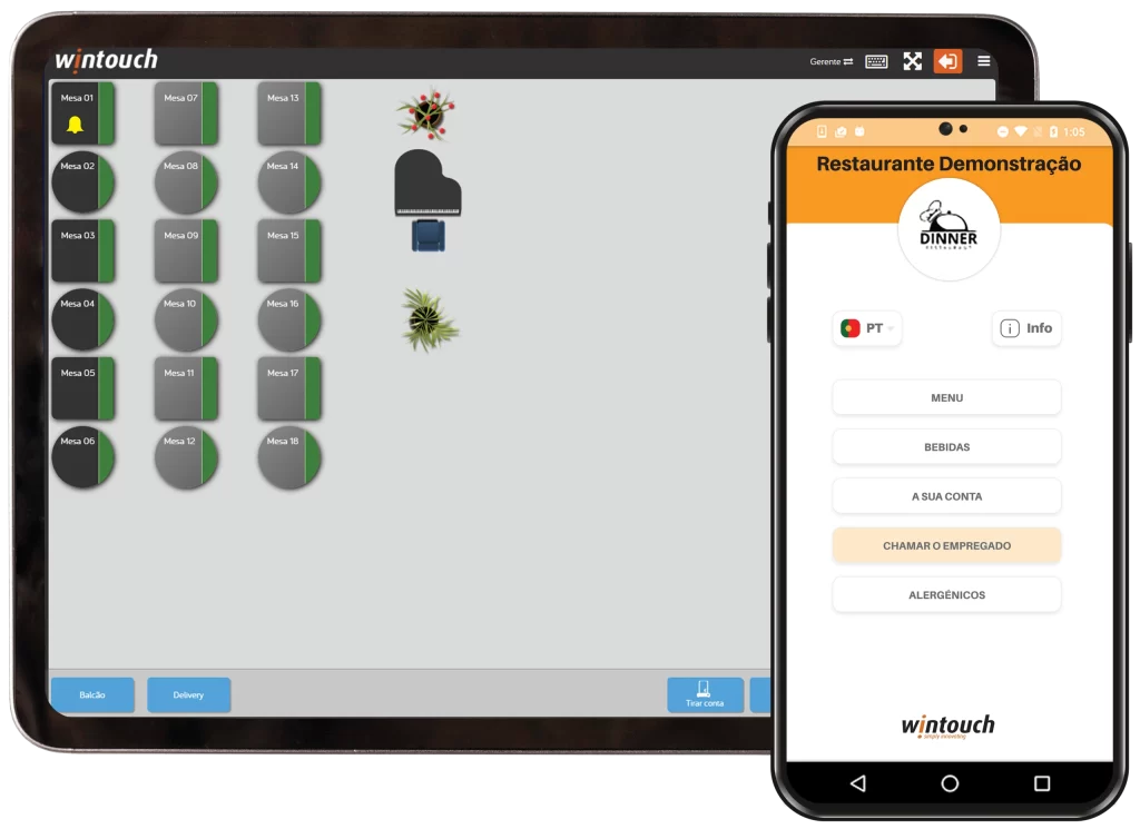 A ementa digital está disponível com o POS Restauração Wintouch Cloud e Wintouch Desktop.