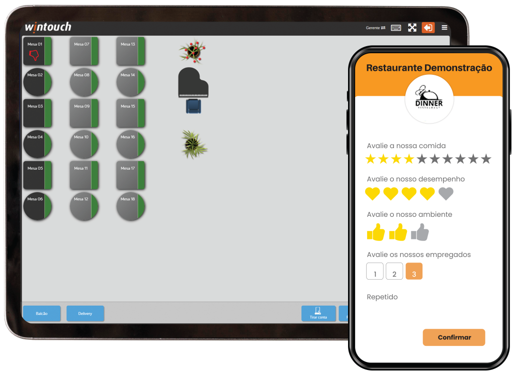 Quando o cliente pressiona este botão chamar Empregado, a mesa será sinalizada no POS.