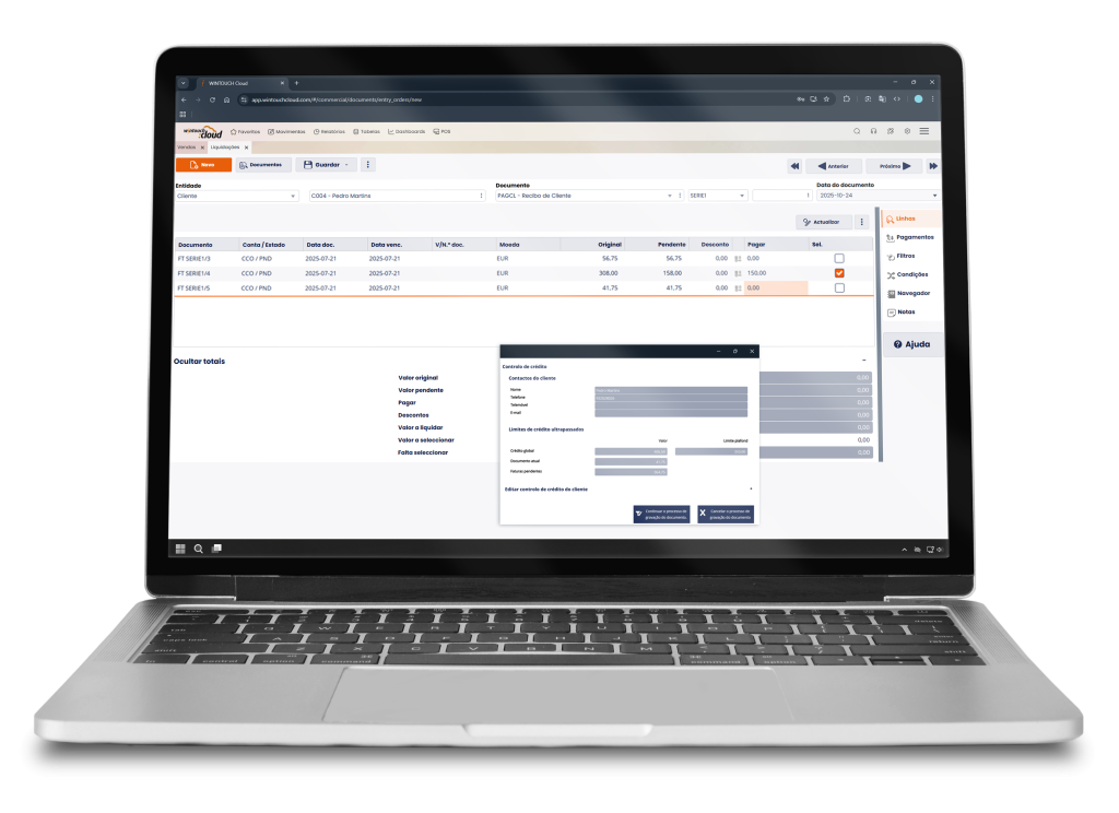 Controlo de crédito diferenciado por documentos, dias de vencimento e atribuição de plafond.