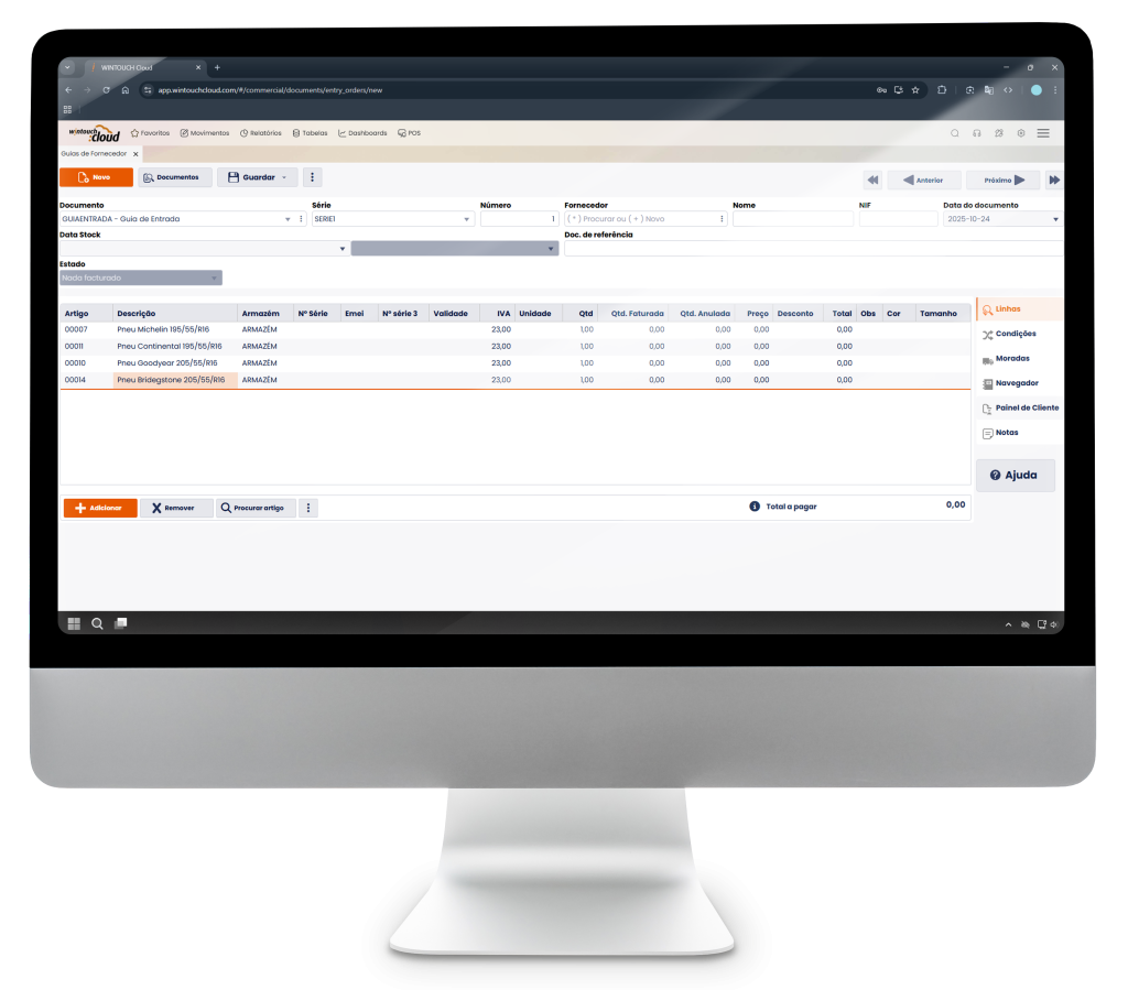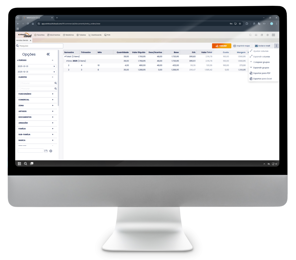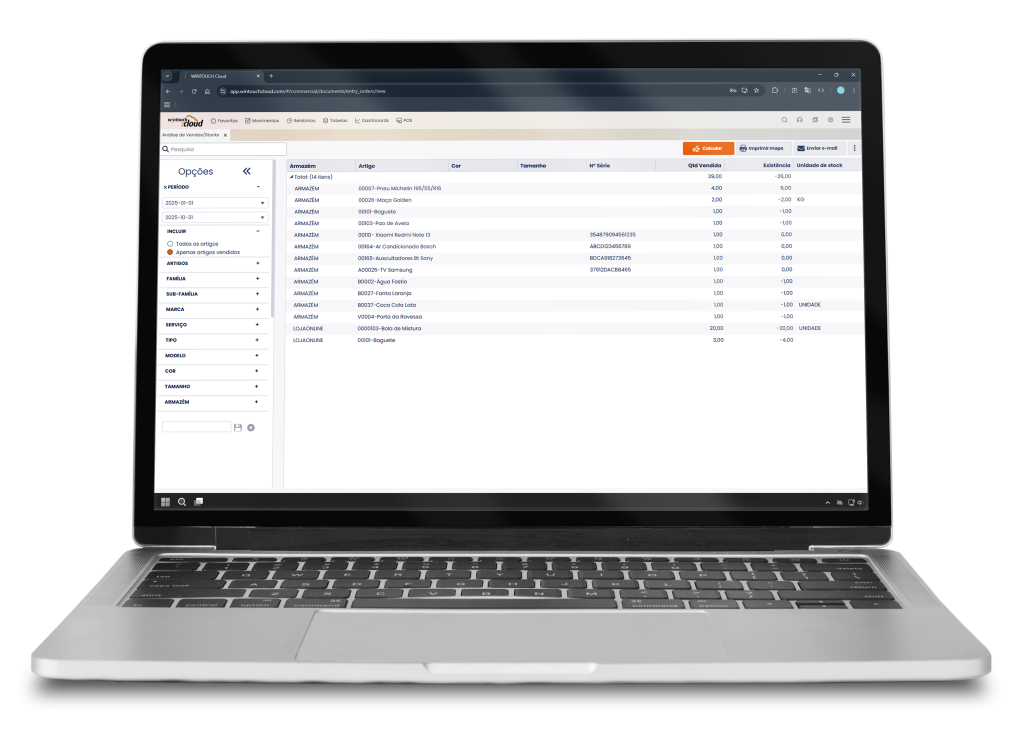 Controlo rigoroso de todas as entradas e saídas de mercadoria, stocks e margem obtida.