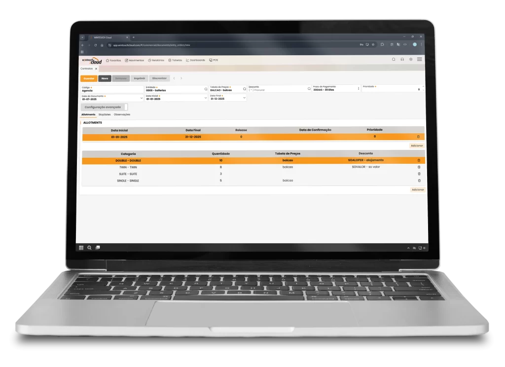Possibilidade de criar múltiplos allotments com condições de preços e descontos distintos para qualquer tipologia de alojamento.