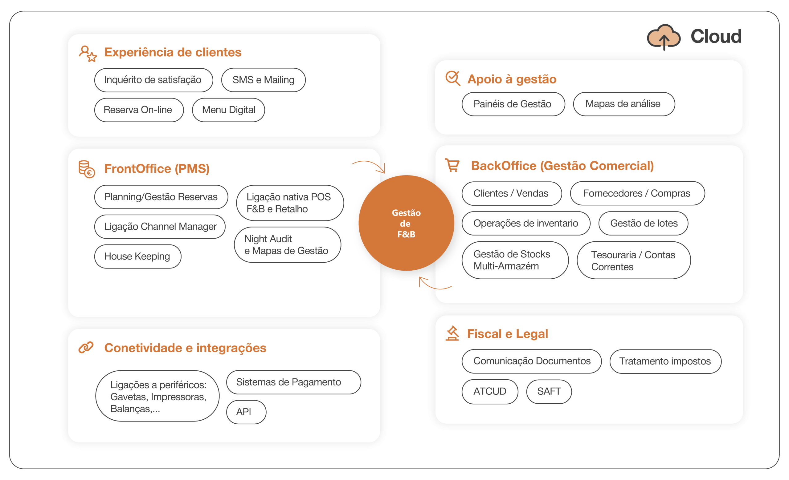 Uma solução Cloud evolutiva cuja sua cobertura funcional permite tratar as especificações de unidades de hotelaria e turismo tão diversos como: