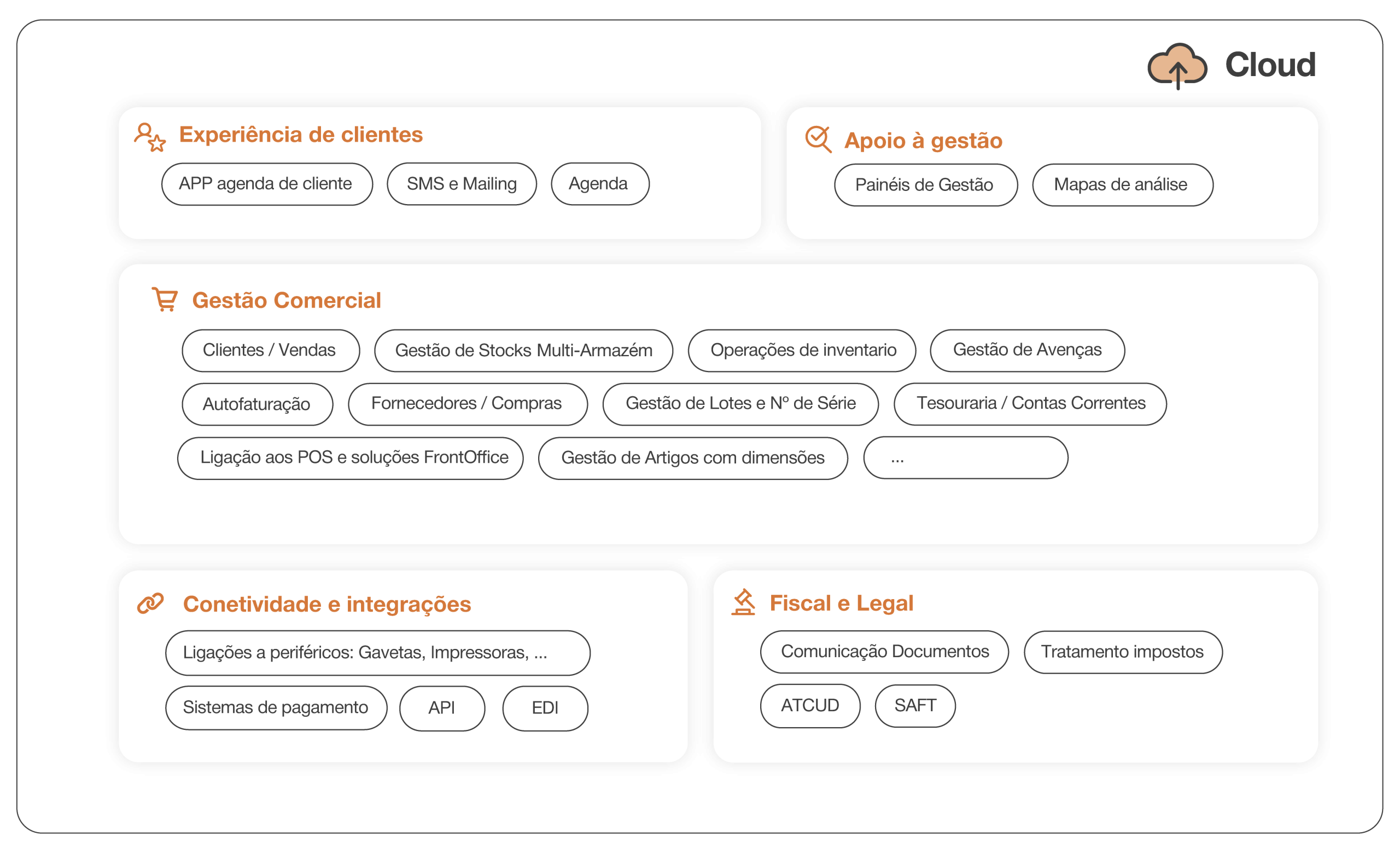 vendas, tratamento de um grande número de artigos, gestão multi-armazém, automatismos para apoiar a definição de campanhas promocionais, atualizações de preços, impressão de etiquetas, operações de inventários, entre outros.