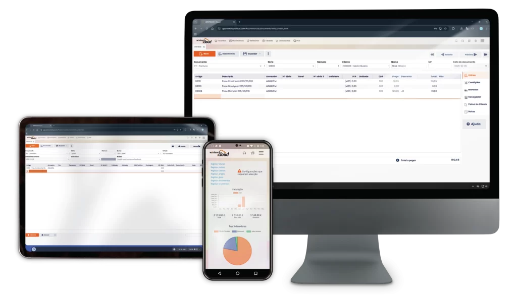 Mobilidade e controlo do negócio, em qualquer lugar, a qualquer hora, em qualquer dispositivo, acedendo via Browser, com Dashboards e analises para ter total visibilidade sobre a sua operação.