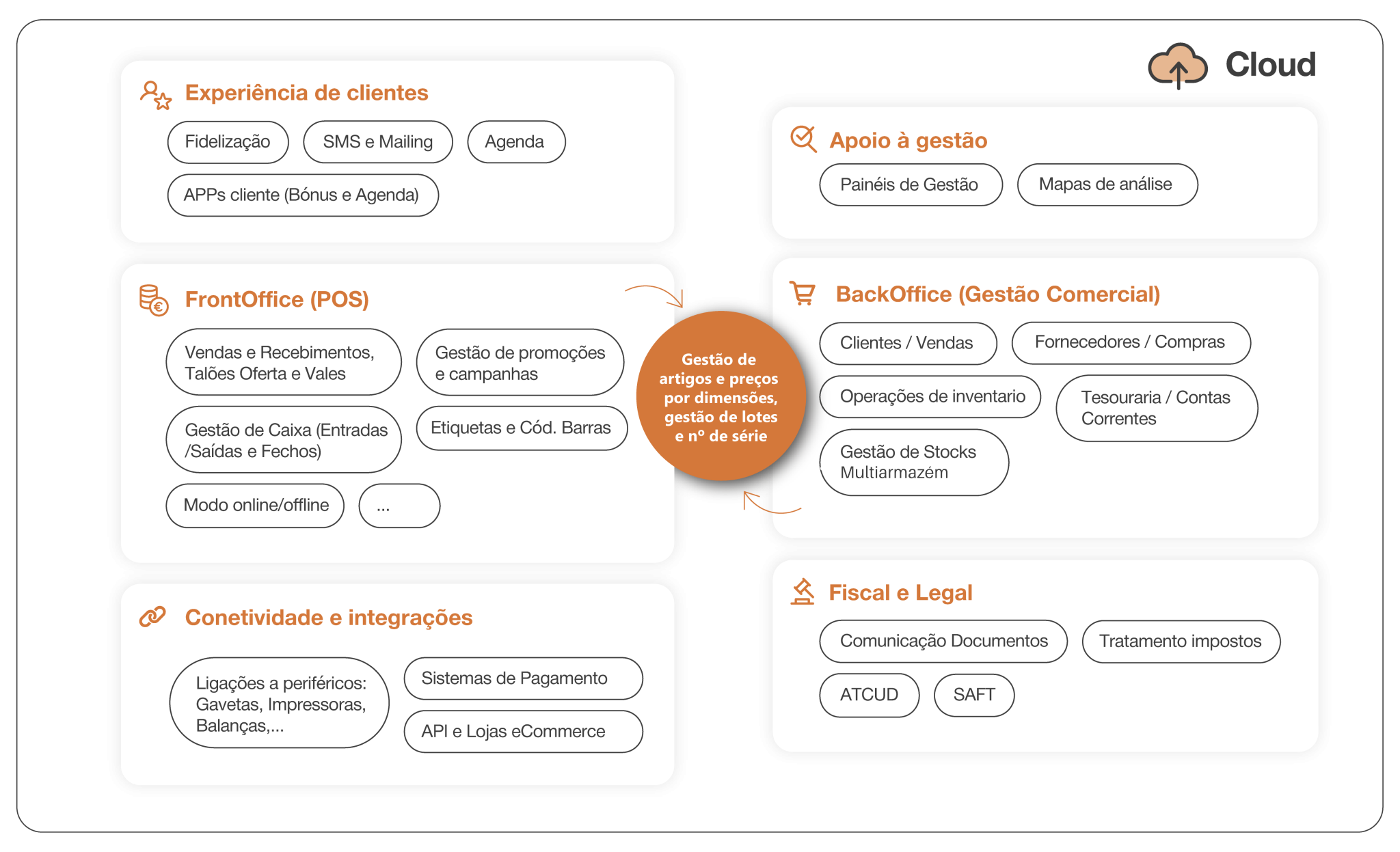 Conheça a solução e as funcionalidades do POS, Gestão Comercial, Bónus/Fidelização, Agenda e outros Módulos complementares