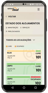 Gestão dos estados dos alojamentos e predefinição de serviços das governantas.